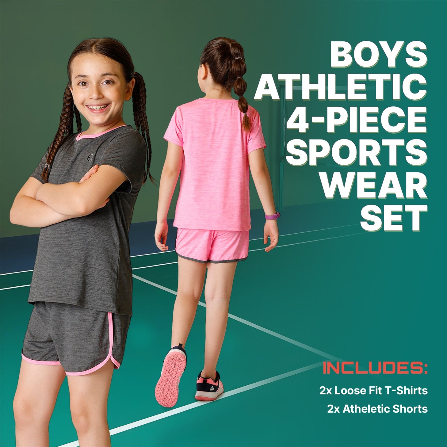 Girls Activewear T-Shirt and Shorts 4 Piece Set