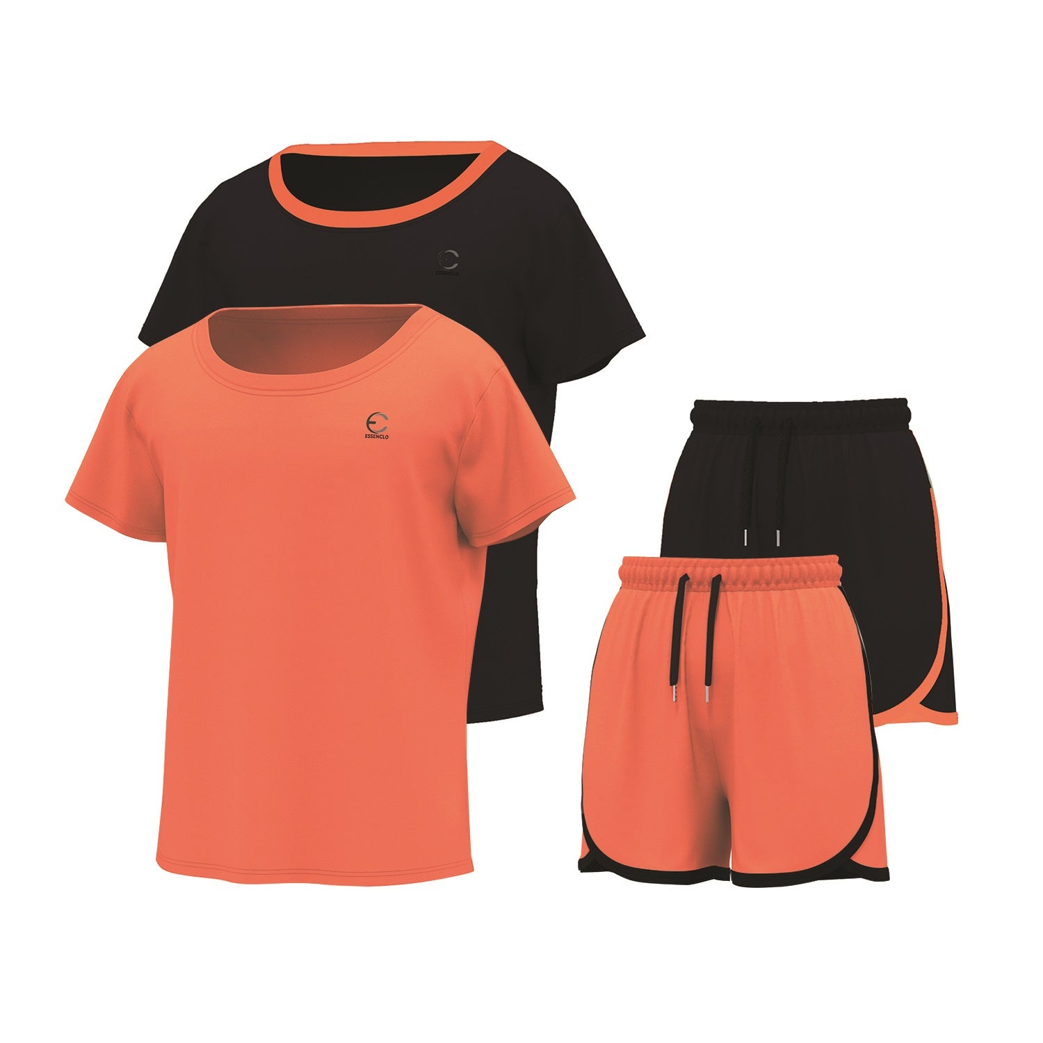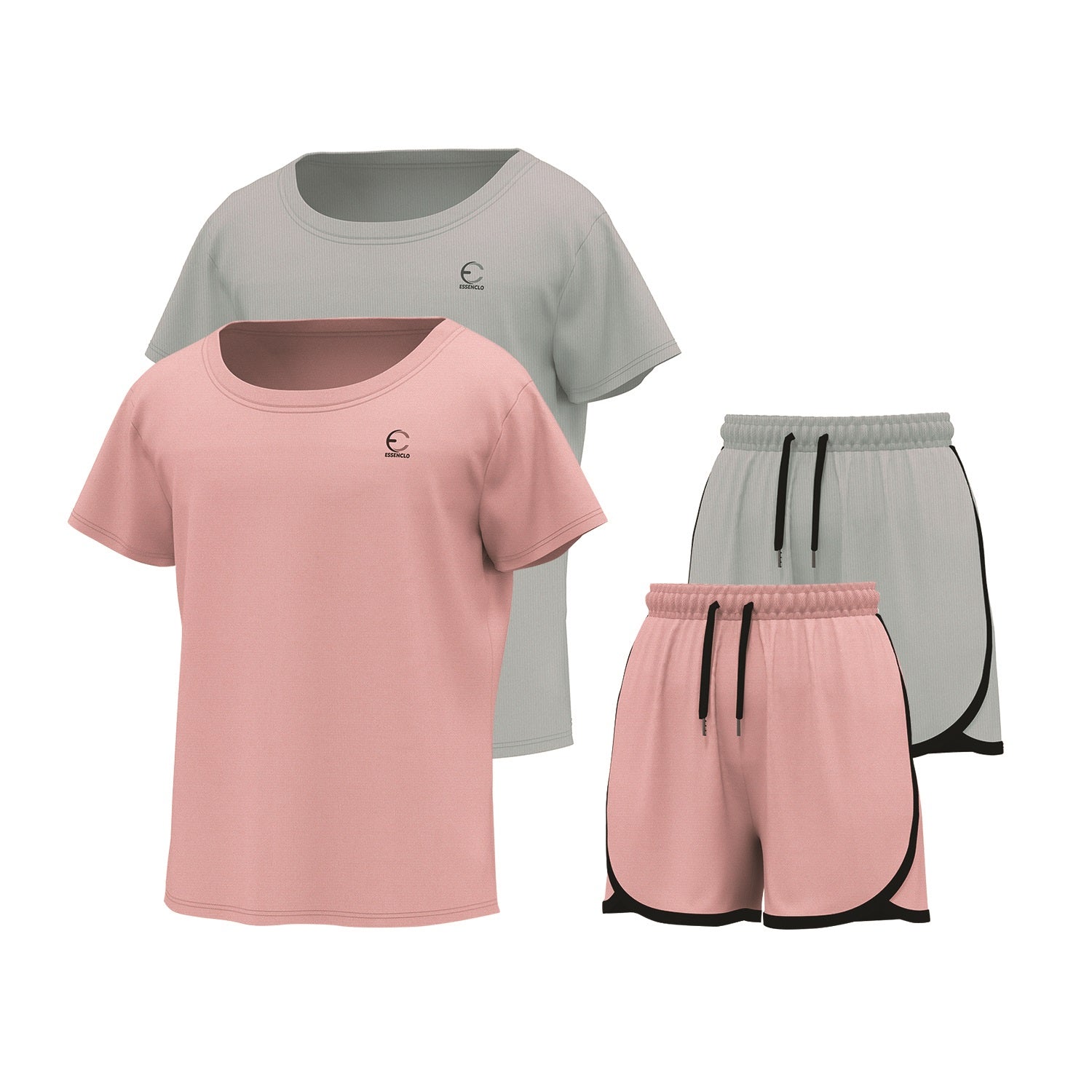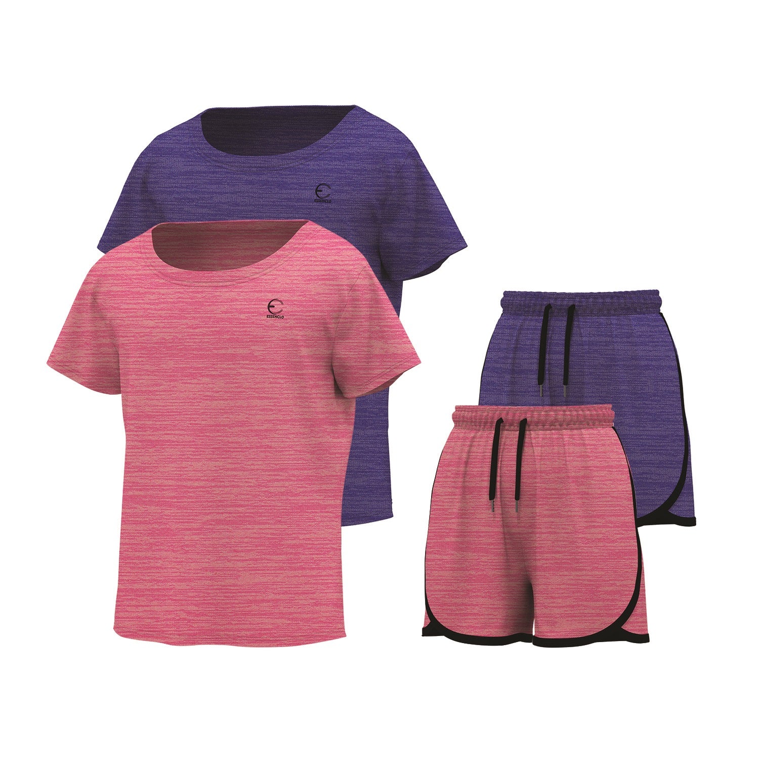 Introducing Essenclo Girls Athletic Clothing Sets - the ultimate 4-piece set for young athletes on the move! The high-performance tagless crew neck T-shirt Girls' clothing sets feature a classic loose fit design for maximum comfort and mobility during any physical activity. Made of lightweight and breathable 90% Polyester and 10% Spandex fabric, our shirts and shorts feature 4-way stretch contrast side panels for enhanced mobility and a full range of motion.