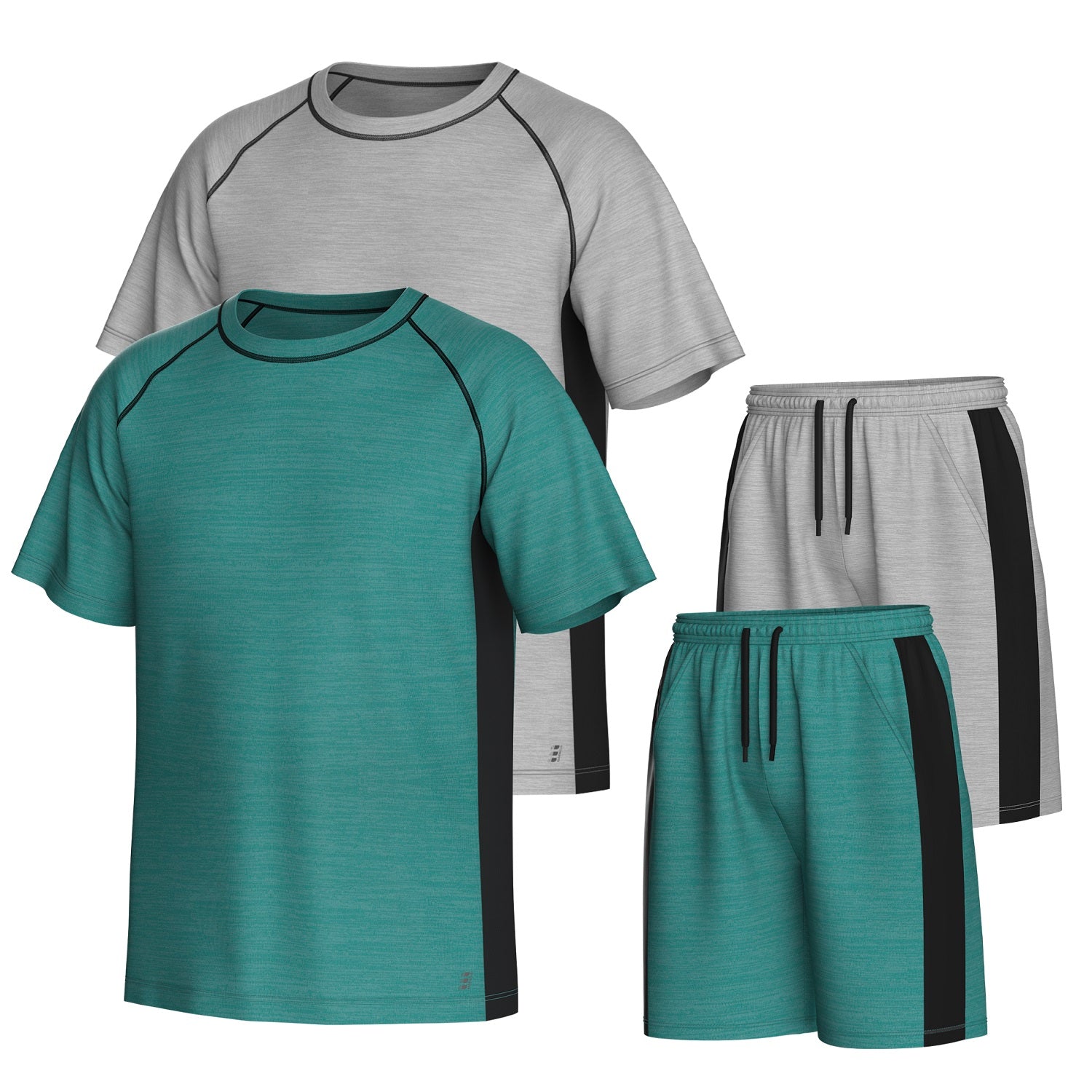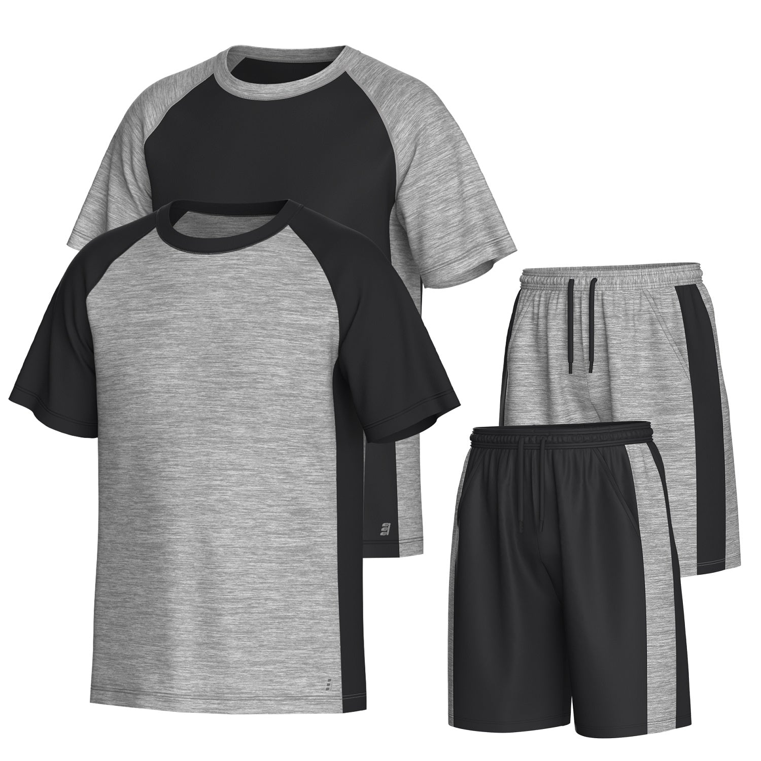 Essenclo Mens Gym Clothes Set - w/ 2 Workout Shirts & 2 Shorts